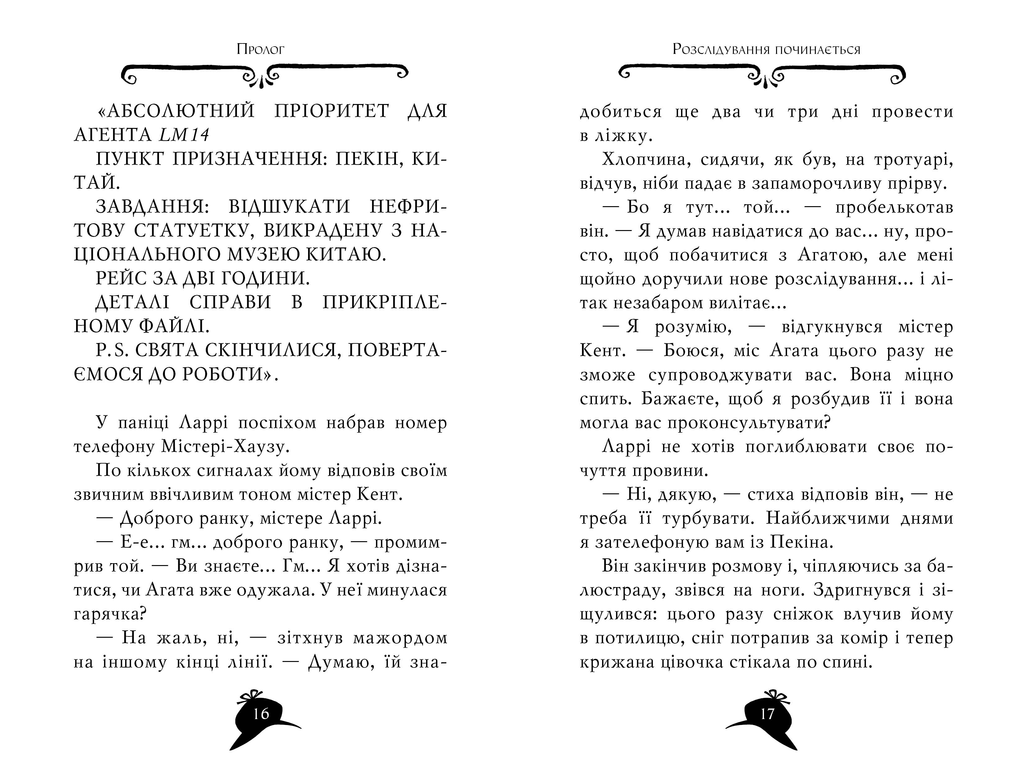 От халепа — на новорічні свята Агата примудрилася захворіти на грип! І все б нічого, та Ларрі, наче зумисне, відправляють розплутувати чергову справу — крадіжку статуетки нефритового дракона з Національного музею Китаю. Вперше в житті юному детективу доведеться діяти самотужки, не покладаючись на допомогу своєї геніальної кузини, містера Кента та вередливого кота Ватсона. Найближчим рейсом Ларрі вилітає до Пекіна, а за три дні Агата отримує від нього повідомлення… Ларрі викрали! І тепер Агата та її друзі мають розв’язати подвійне завдання: відшукати статуетку дракона та визволити бідолашного Ларрі.