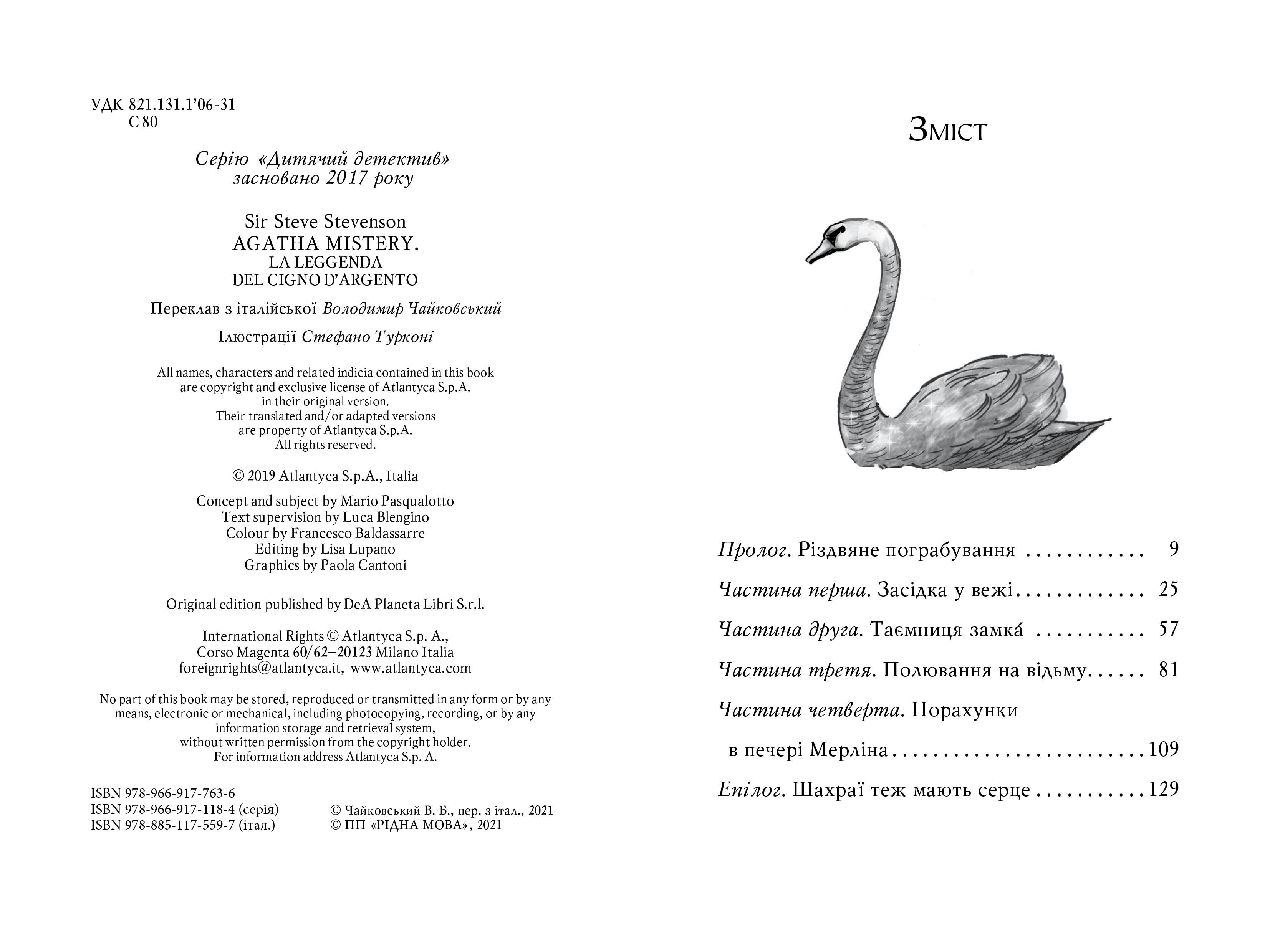 Оригінальна назва книжки: La leggenda del cigno nero (Agatha Mistery)