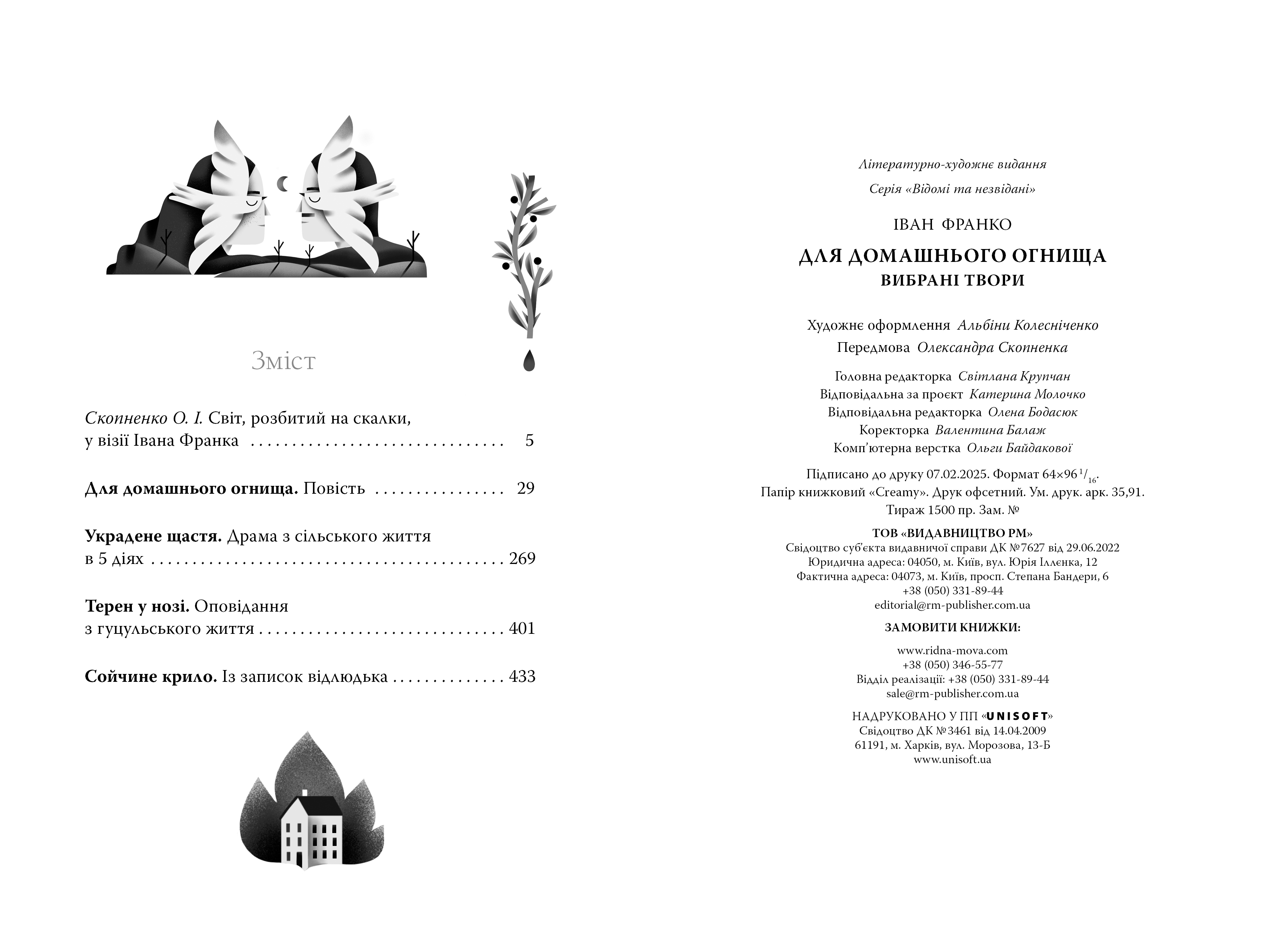 У цьому виданні надруковано чи не найпомітніші психологічні твори класика: повість «Для домашнього огнища», новелу «Сойчине крило», оповідання «Терен у нозі», драму «Украдене щастя». Вони показують приховані механізми людських учинків, розкривають складний внутрішній світ героїв, порушують багато морально-етичних питань. І відповіді на них не такі прямолінійні, як можна було б сподіватися. Франкові тексти відбивають суспільні виклики кінця ХІХ — початку ХХ століття, але звучать по-сучасному, бо зачіпають проблему сутності людини як феномена взагалі.