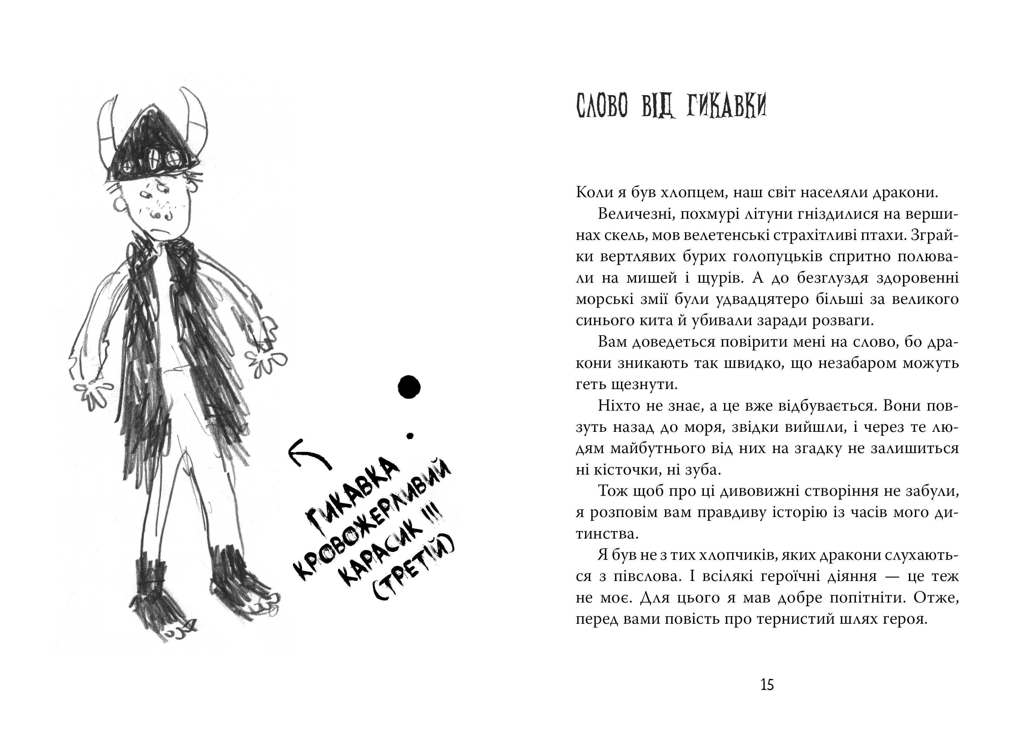 Ви, може, не знаєте, та коли інші народи приручали собак, коней, буйволів... вікінги підкорювали драконів. Однак юний вікінг спершу мусив упіймати собі дракона. Це було непросто. Потім — приборкати його, а це ще складніше. Усе разом називали посвятою в драконоборці, або випробуванням вогнем. Того, хто його не проходив, виганяли з племені.