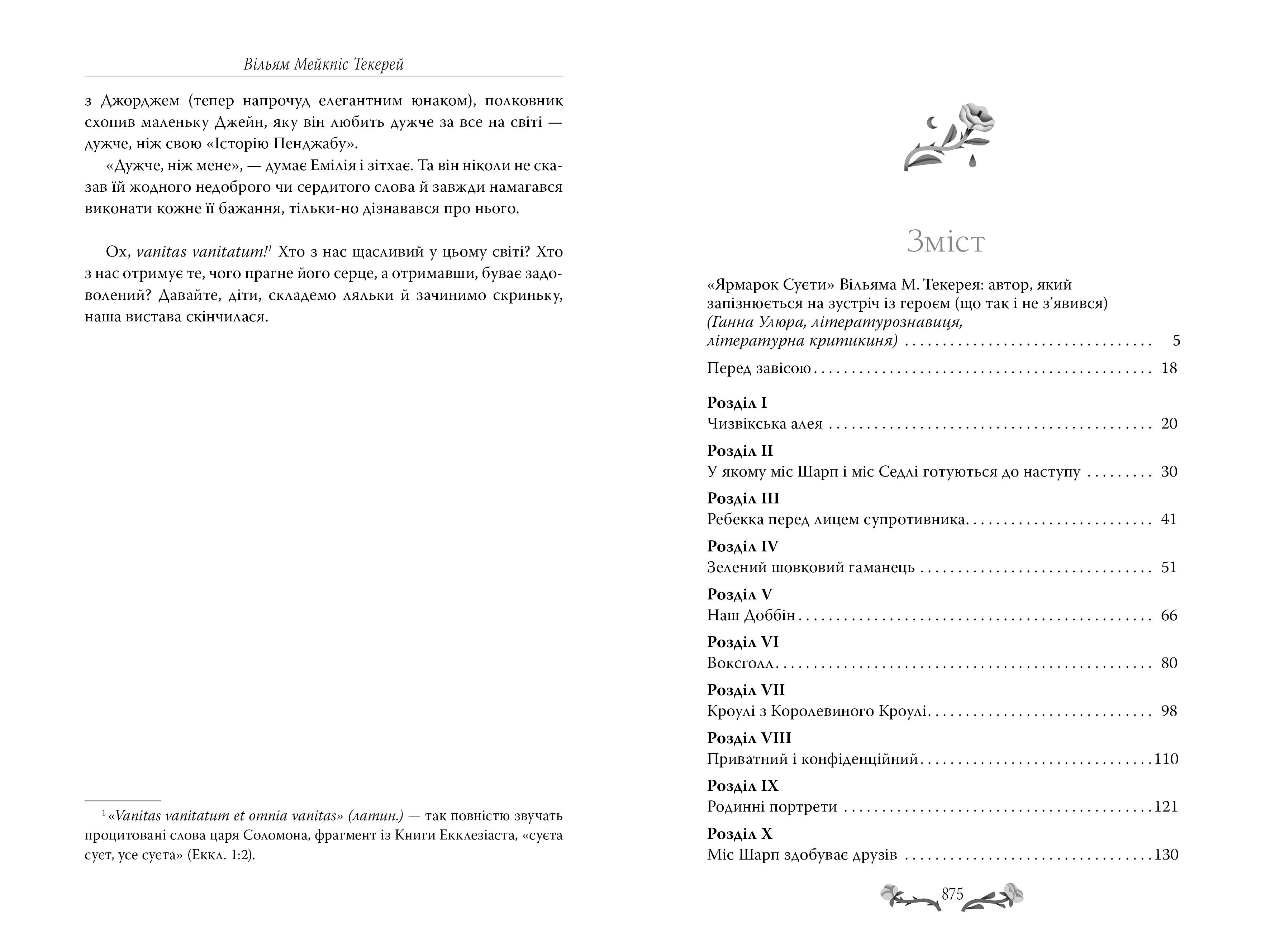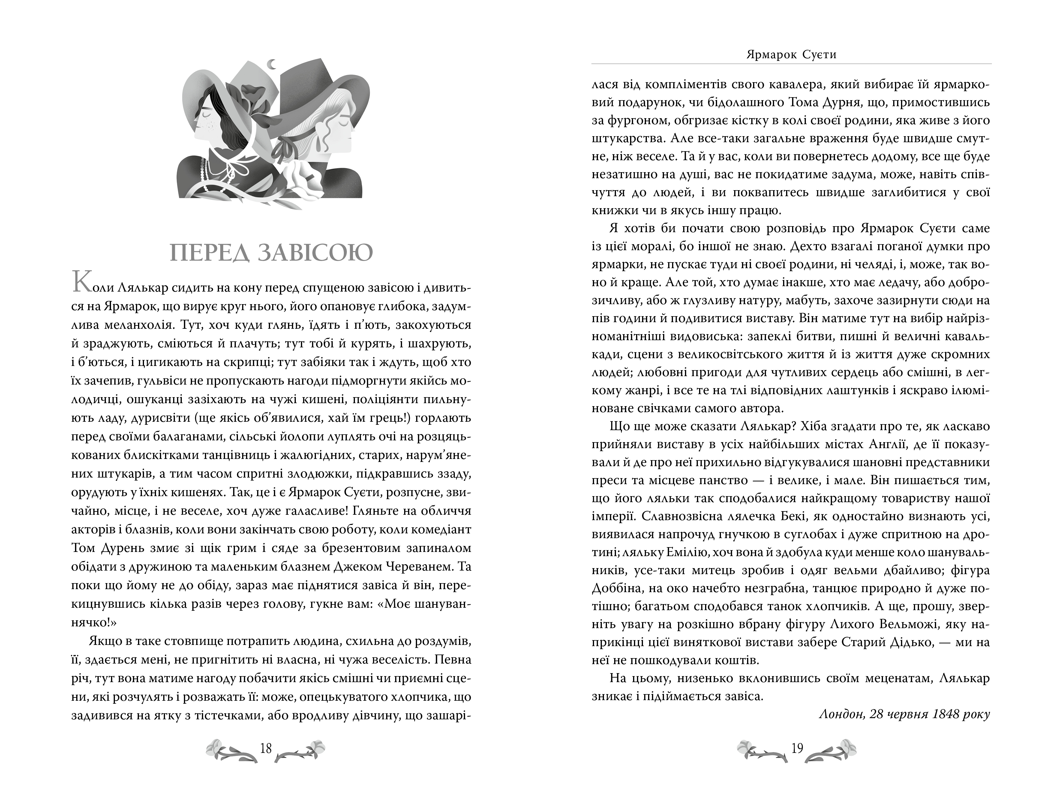 «Ярмарок Суєти. Роман без героя» Вільяма Мейкпіса Текерея — сатиричний роман, написаний у 1848 році, який уже майже два століття читають і перечитують у всьому світі. Чим же він так вабить? Чому такий відомий, та однаково незвіданий? І чому одні твори стають світовою класикою, а інші ні? Майже риторичні запитання…