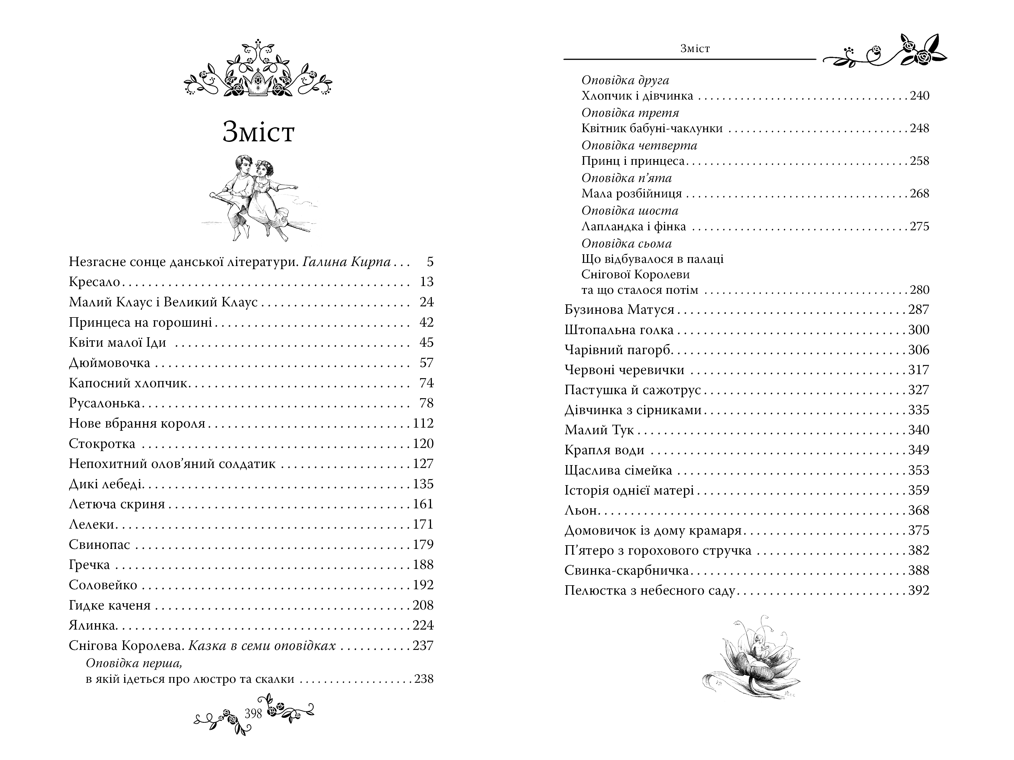 У цьому виданні представлено 34 казки Ганса Християна Андерсена в майстерному перекладі відомої перекладачки Галини Кирпи, яка повернула й відтворила всі авторські акценти, вилучені за часів радянської цензури. Оновлений переклад доповнюють ґрунтовні примітки літературознавця й перекладача Володимира Панченка, що зацікавлять як дослідників творчості Андерсена, так і широке коло читачів.