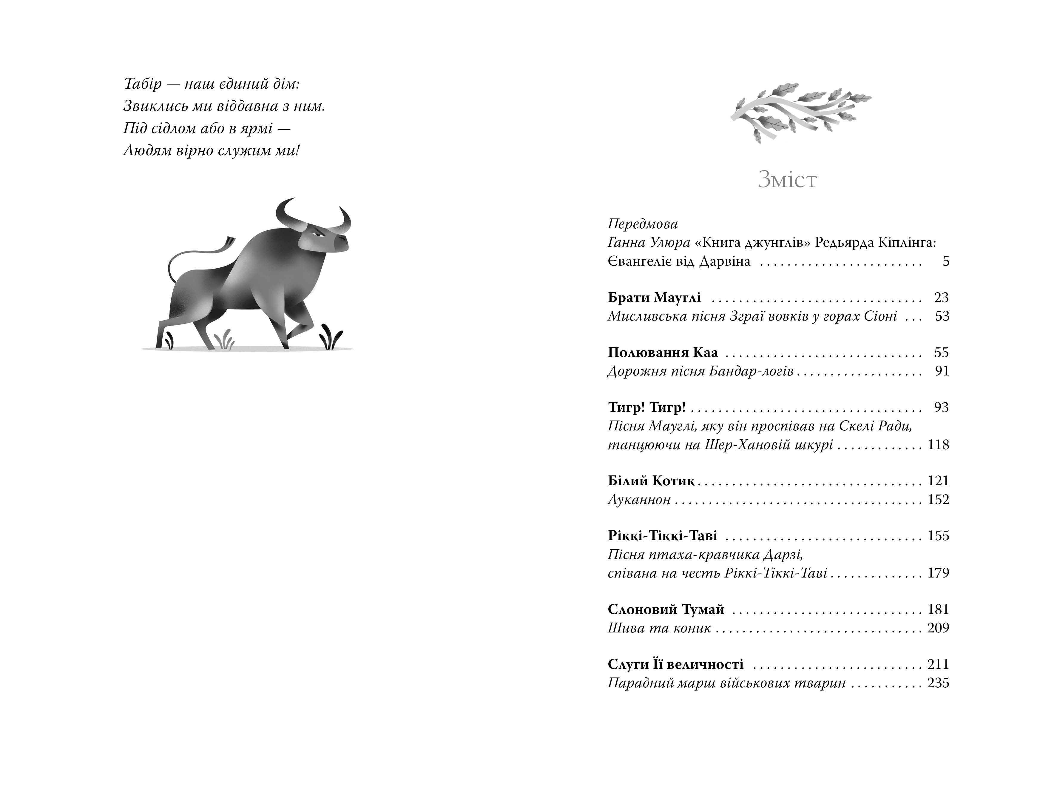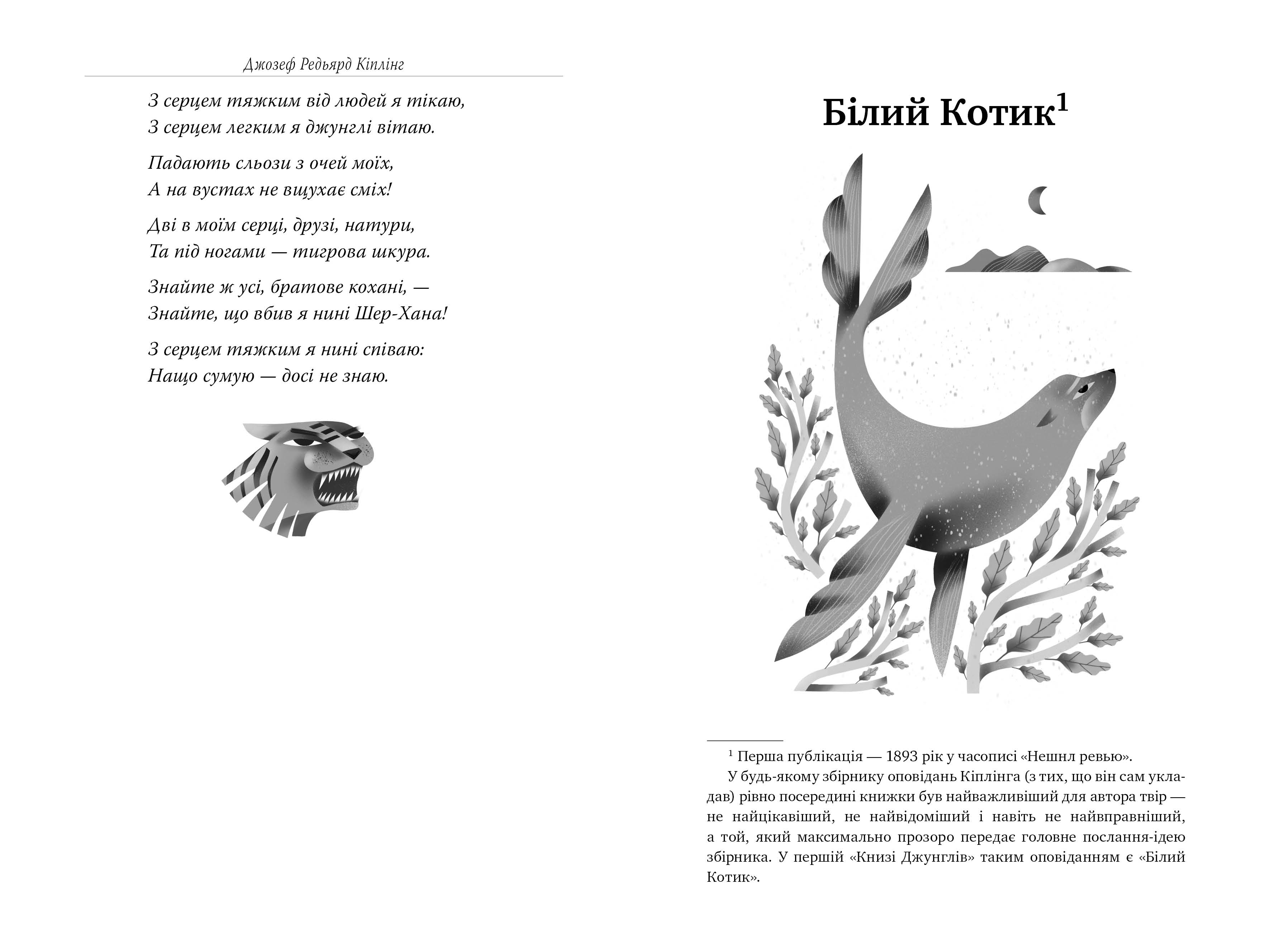 Коли ми чуємо назву «Книга джунглів», наша пам’ять вмить послужливо відтворює історію Мауглі — хлопчика, вихованого вовками. Але «Книга джунглів» — це не лише про нього. Вона також про морського Білого Котика, який шукає нових земель, щоб врятувати родичів. Про те, як потрапляють у рабство і яких зусиль вартує наступним генераціям з того рабства звільнитися. Про подвиг відважного мангуста Ріккі-Тіккі-Таві. Про людей серед звірів і про тварин серед людей. Про те, як формується вірність законам племені, готовність діяти, прагнення служити високим цілям.