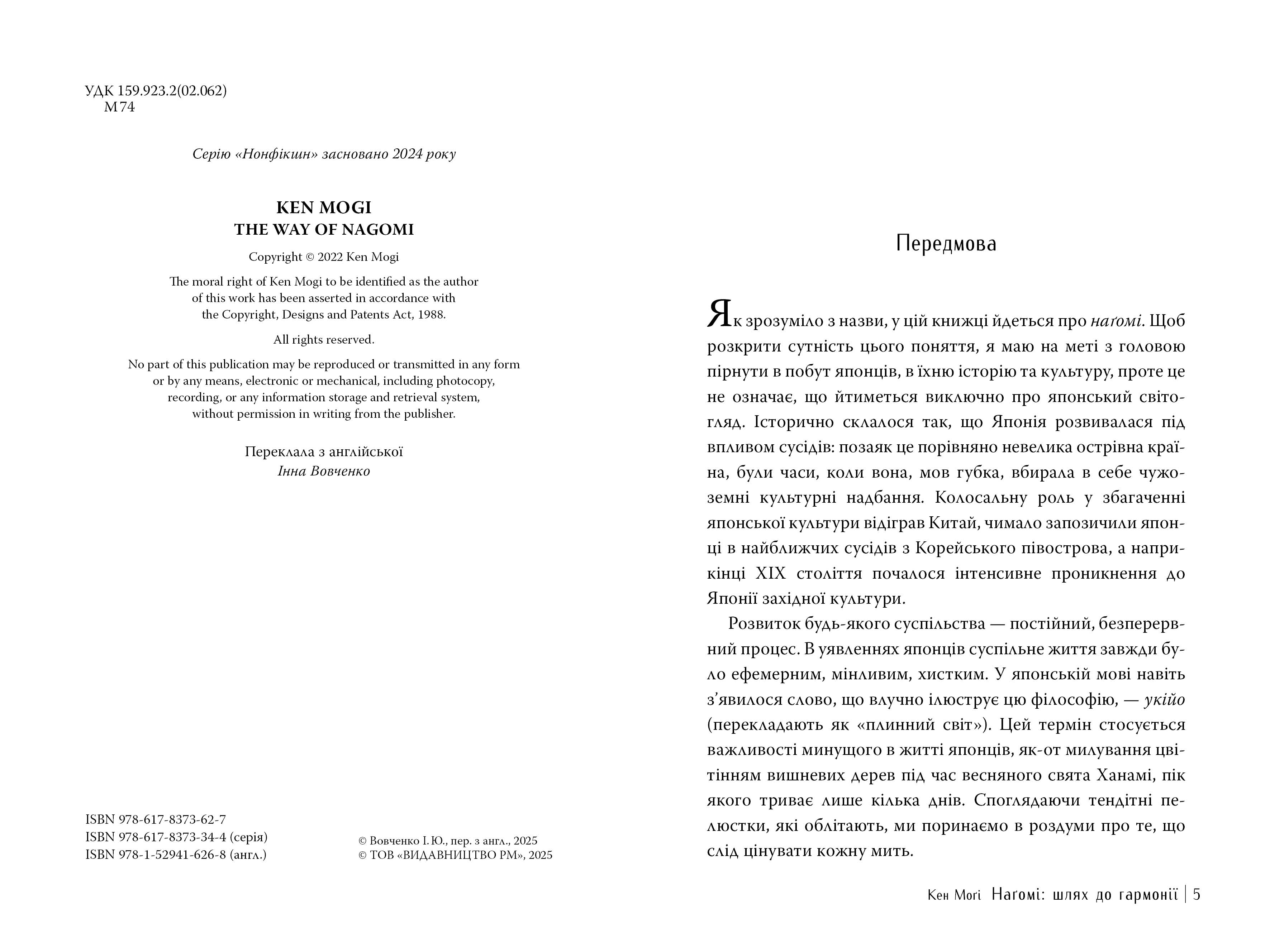 У житті кожної людини трапляються радощі, й прикрощі, злети й падіння. У книжці, яку ви тримаєте в руках, всесвітньо відомий автор Кен Моґі пояснює, чому важливо щиросердо прийняти те, як влаштовано світ, і збалансувати весь здобутий досвід — і позитивний, і негативний. Заглиблюючись в історію, традиції та культуру Японії і надаючи інструментарій, який допоможе отримувати задоволення від життя, автор показує, як кожен із нас може створити наґомі для себе.