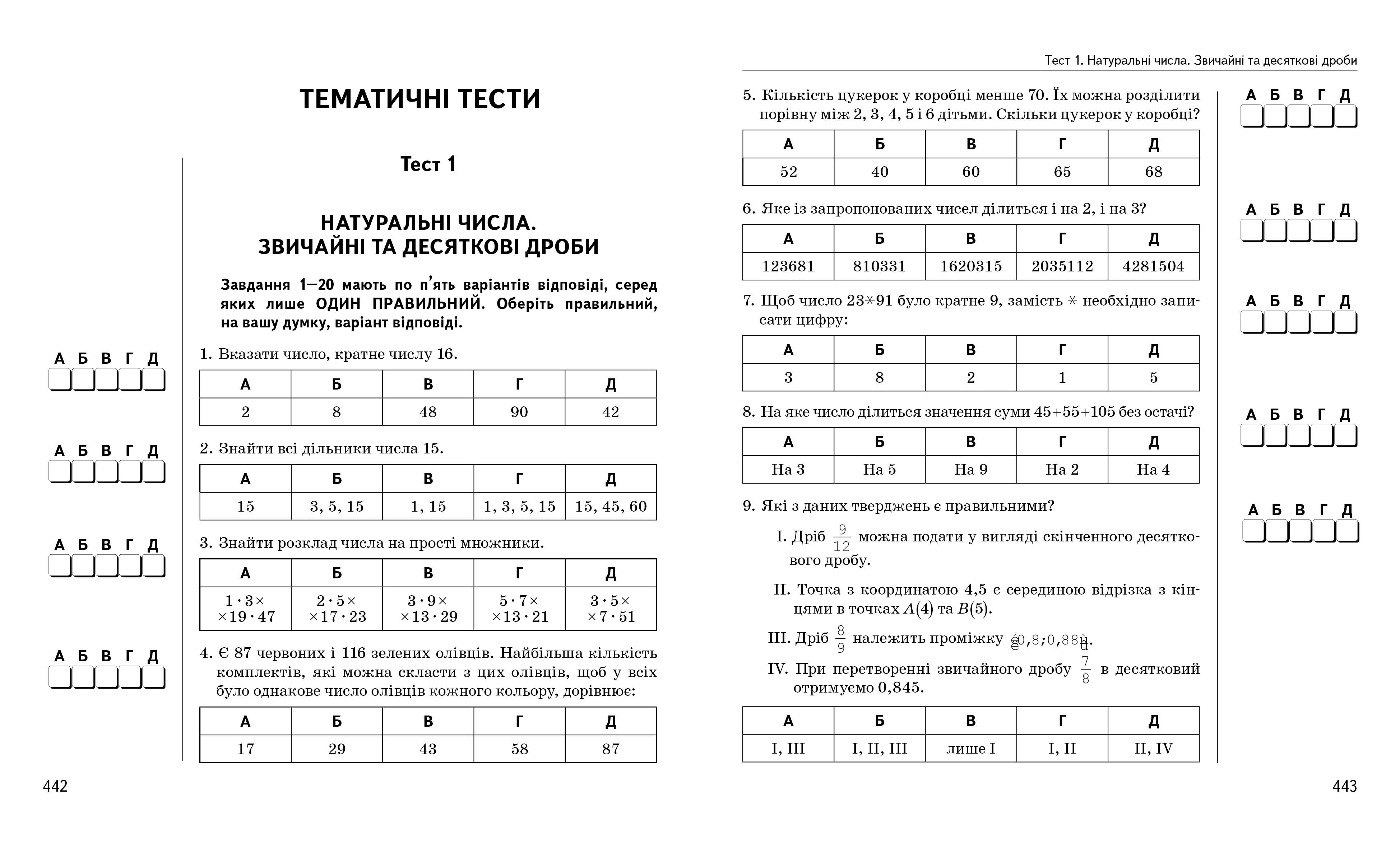 У «Новому довіднику. Математика. Тести» зібрано і систематизовано всі основні теми зі шкільного курсу математики. Стислий і зрозумілий текст, наочні приклади з докладним поясненням, схеми, таблиці та малюнки допоможуть ґрунтовно і швидко опанувати поданий матеріал. Розв’язавши вправи з «Тематичних тестів» і «Тестів у форматі ЗНО», ти зможеш перевірити свій рівень знань і якнайкраще підготуватися до ДПА та ЗНО.