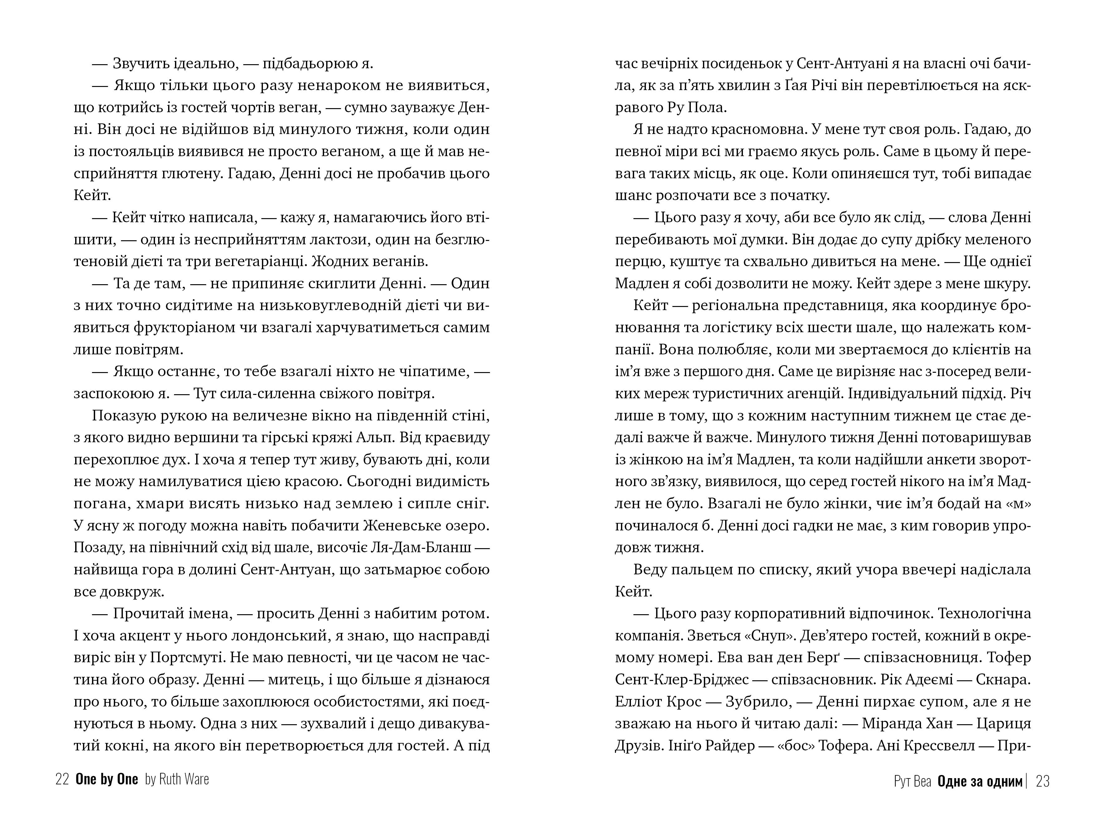 Напружений герметичний трилер, події якого розгортаються у розкішному шале серед красивої пригоди Французьких Альп, – сніжна зимова гостросюжетна історія «Одне за одним» Рут Веа.