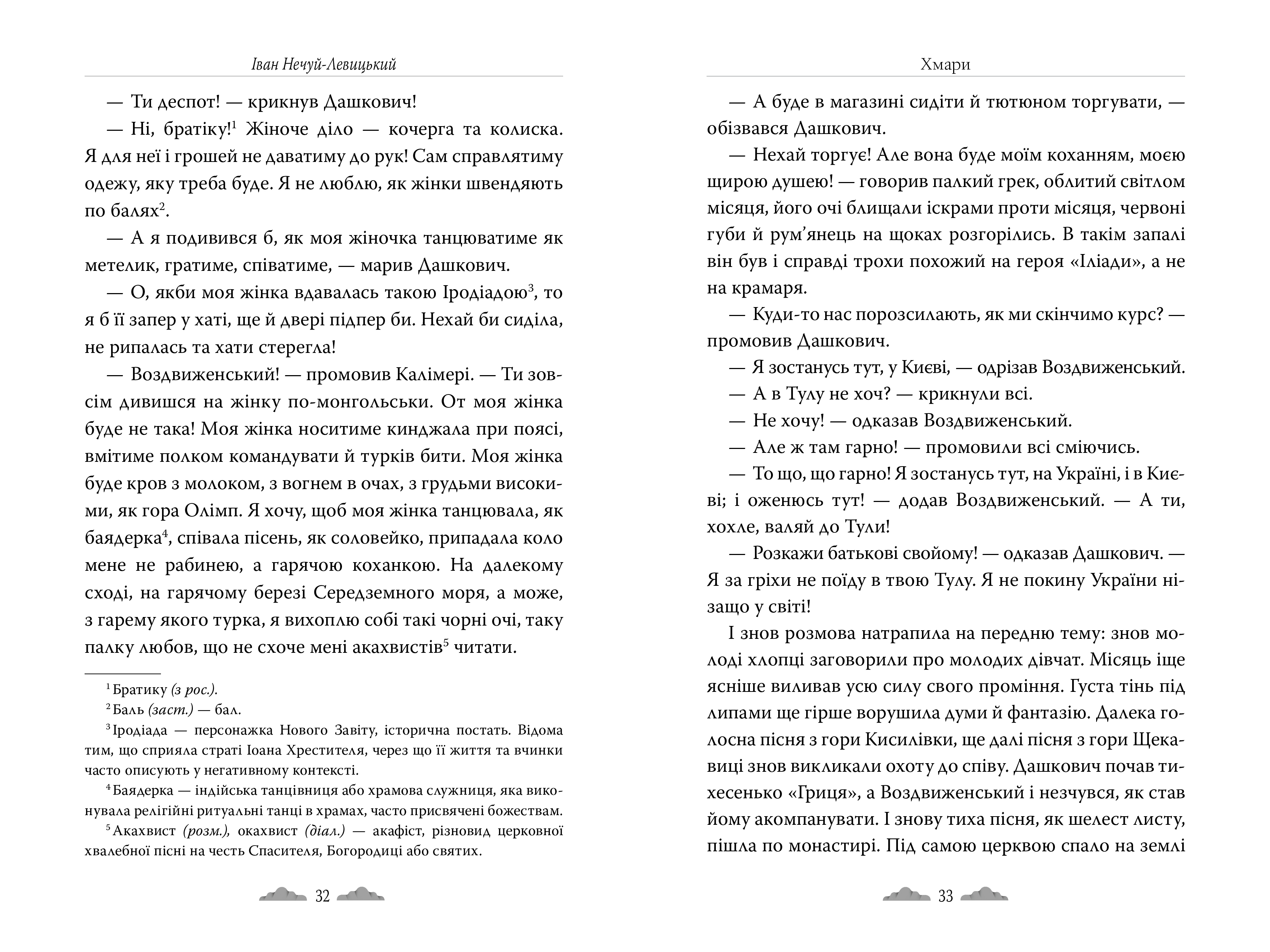 «Хмари» — це повість про тих, хто шукає свій шлях у мінливому світі. Герої намагаються зберегти віру й ідеали, помиляються, падають, але підіймаються знову. Автор майстерно змальовує життя української інтелігенції XIX століття — з її сумнівами, прагненнями й нескінченними внутрішніми пошуками. Герої балансують між особистим щастям і відповідальністю перед ближніми, а їхні історії сповнені болю, любови й сподівань.